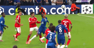 欧冠联赛阶段第2轮,对阵本菲卡,切尔西前锋若昂-佩德罗因抬脚过高,两黄变一红被罚下